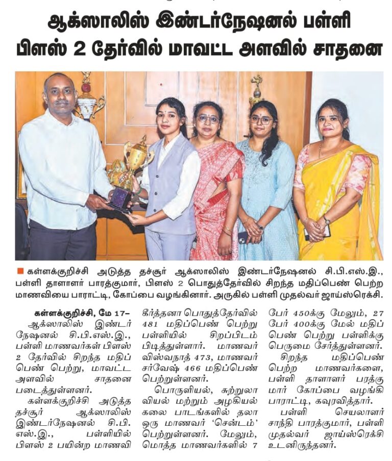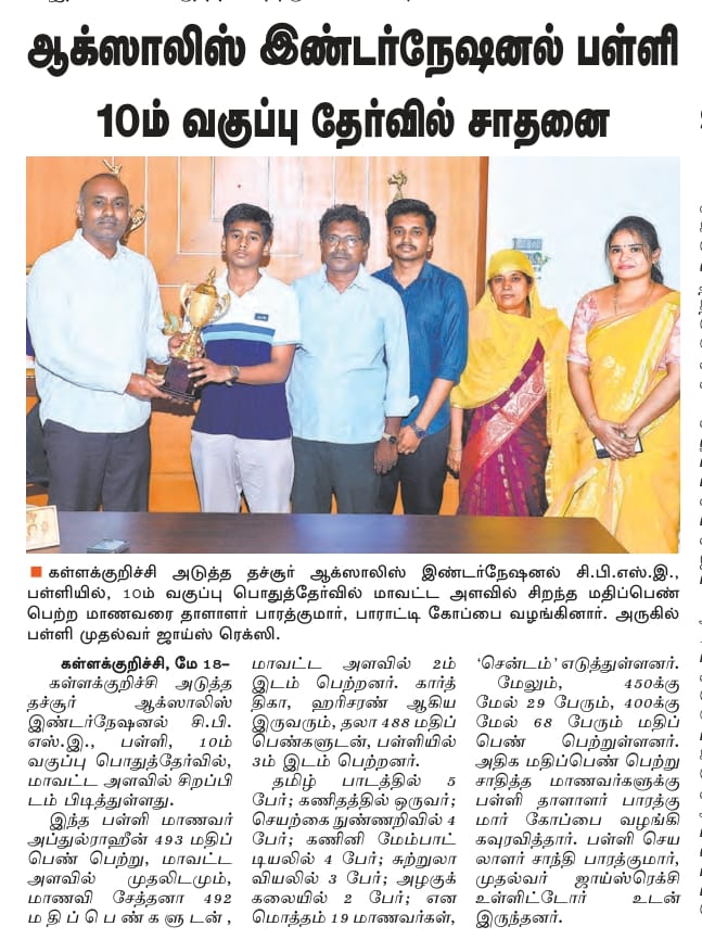 AWARD WINNER OF BEST AMONG CBSE SCHOOL IN TAMIL NADU